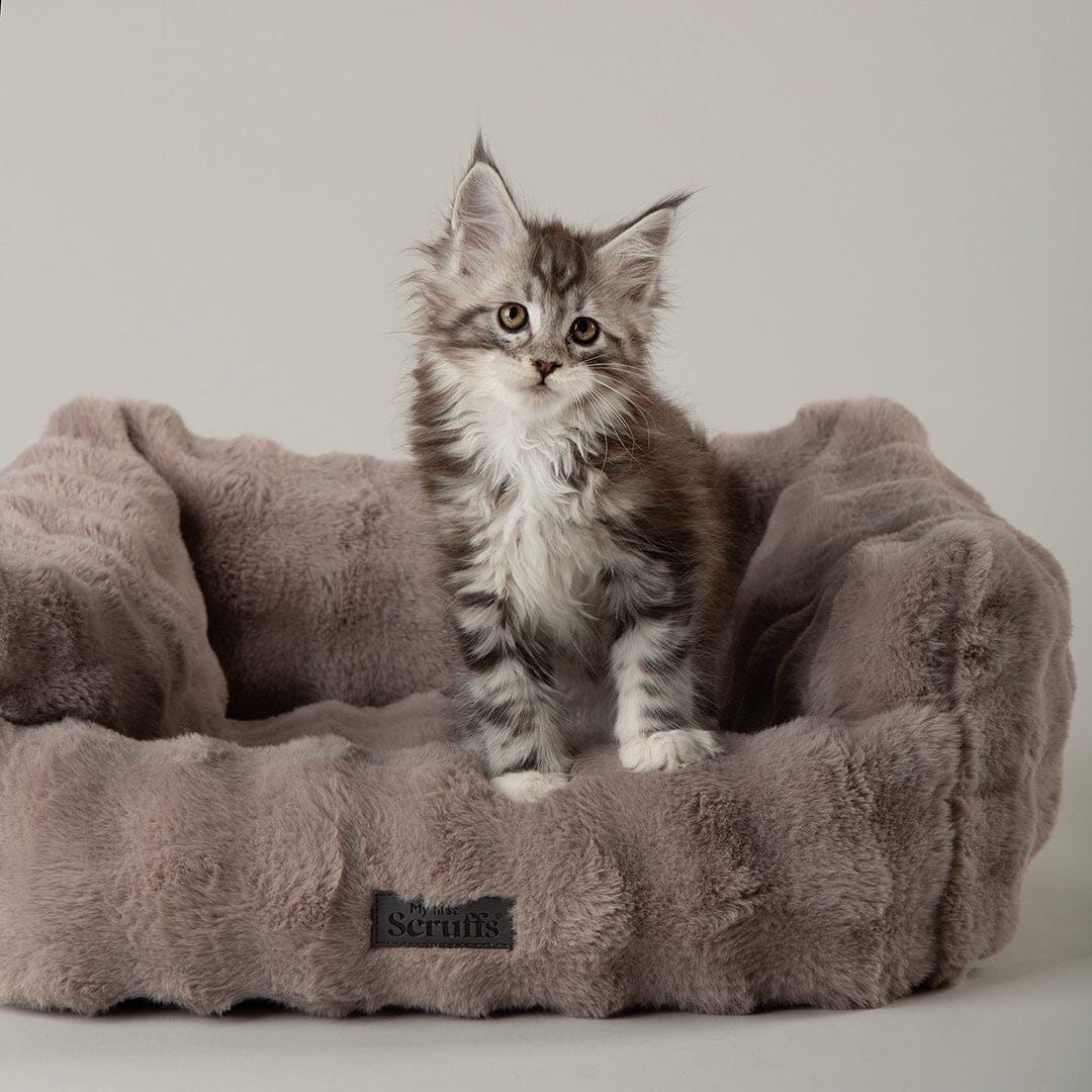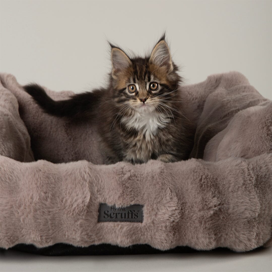 The Scruffs® My First - Cloud collection has been specifically designed for puppies and kittens. The soft cut bubble faux fur outer provides a sophisticated look. Featuring a dropped front, this allows for easy access for kittens and puppies. The super soft inner plush sleep areas are super warm and super cosy.